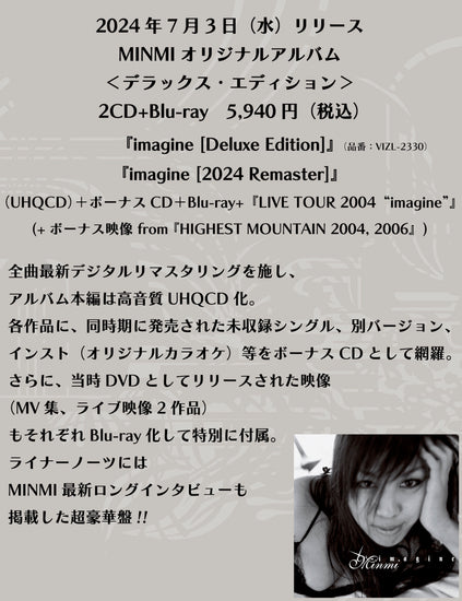 MINMIが2004年にリリースした「imagine」が貴重なボーナス音源&映像付きでリイシュー!!